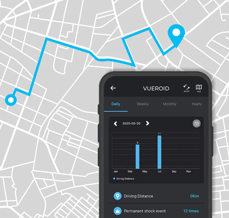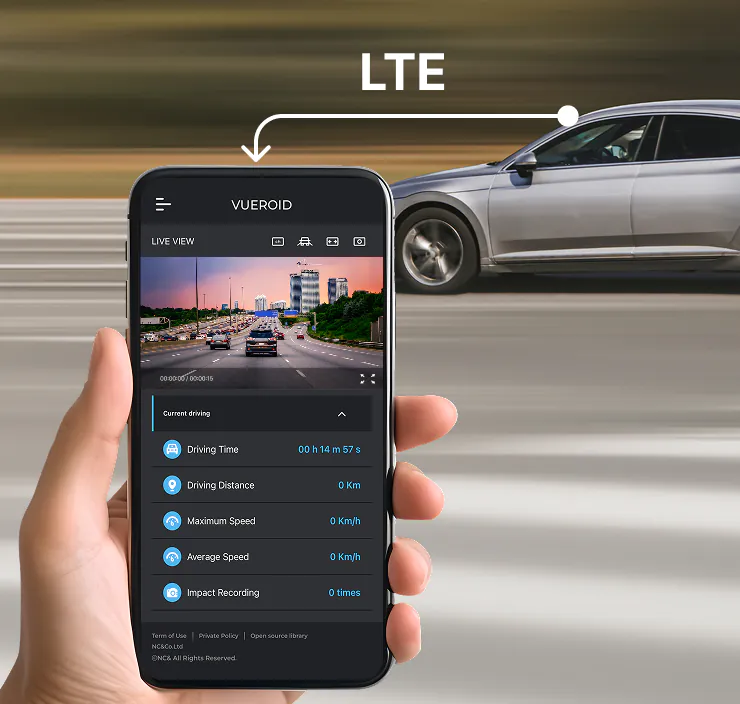 Built-in Bluetooth allows hassle-free dash cam pairing with your compatible Android or iOS device via the Vueroid cloud app.